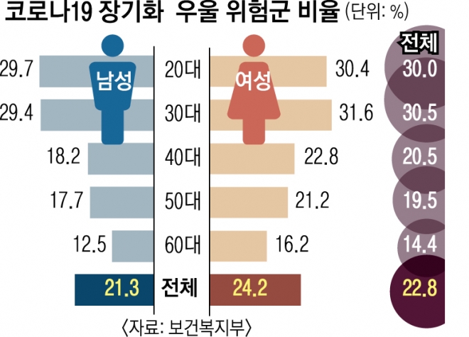 코로나19 장기화 속에서 우울감을 느끼거나 극단적 선택까지 고민하는 사람이 크게 늘어났으며, 특히 20~30대, 특히 여성이 가장 심각한 상황에 내몰려 있다는 조사결과가 나왔다.