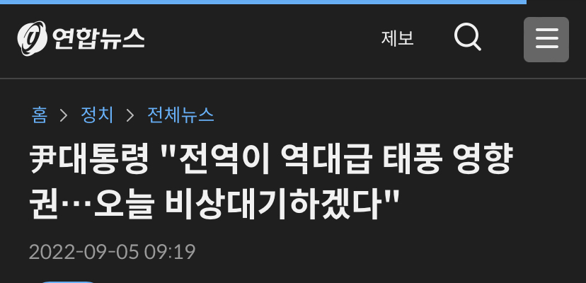 역대급 태풍 온다고 대통령이 비상대기하는 게 기사가 되는 나라.