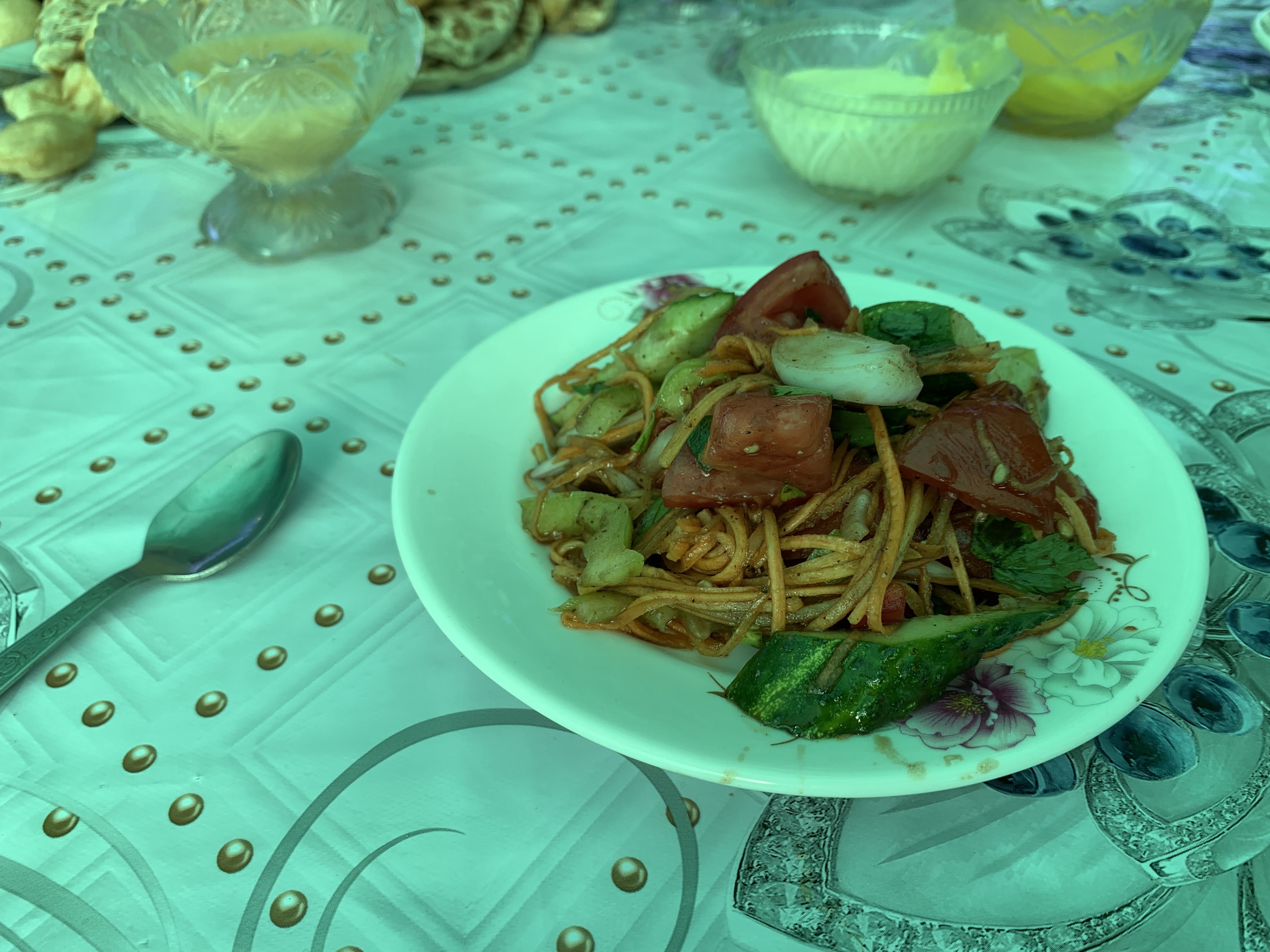 이 곳은 손님을 환대하는 문화가 강하다. 손님들 술잔과 찻잔에 술과 차를 쉬지 않고 채워주고 먹을 걸 끊임없이 권한다. “아침엔 간단하게 계란 후라이나 해주시면 됩니다”라고 했는데 아침에 일어나보니 1인당 계란후라이 세개씩 나왔다. 당근과 오이, 가지를 섞어 만든 샐러드도 함께 먹으니 그렇게 든든할 수가 없다.