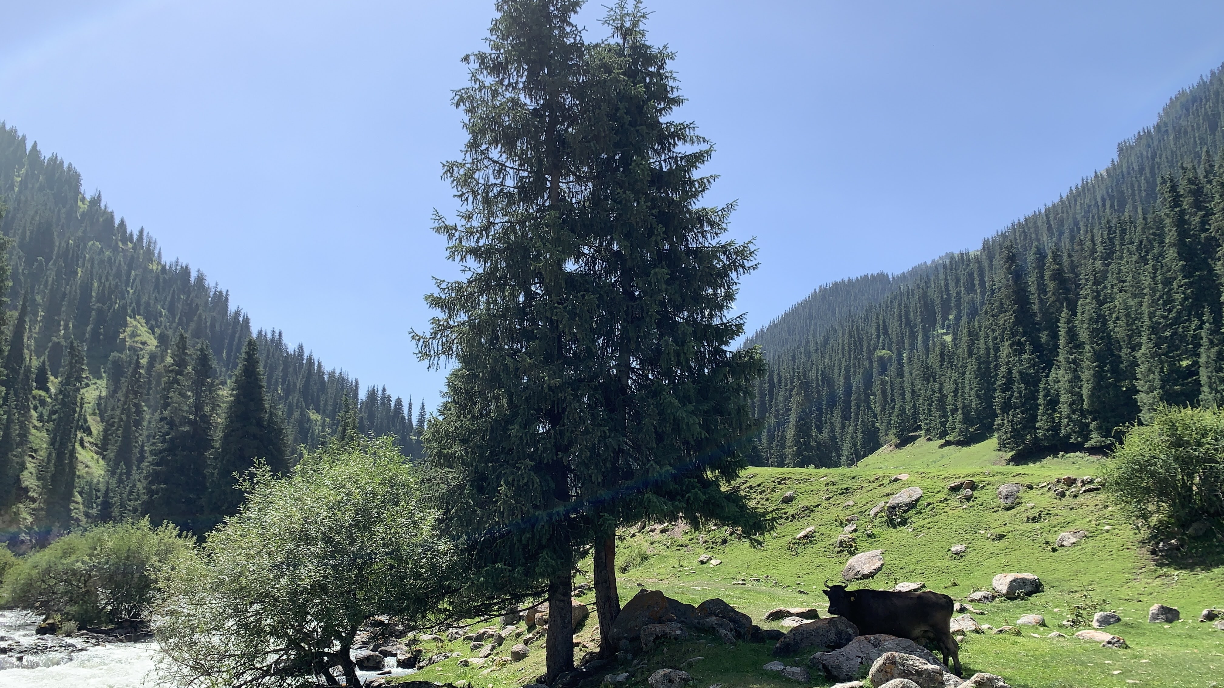 오늘은 알틴아라샨(Алтын-Арашан)에 오를 예정이다. 알틴아라샨은 키르기스어로 ‘황금 치유 열쇠’를 뜻한다고 한다. 해발 2500m가 넘는 곳에 우뚝 서 있는데다 저 멀리 설산인 팔랏카 봉이 하얗게 보인다. 두 산맥 사이 해발 3500m에 있다는 알라쿨(Ала-көл) 역시 명물이라고 하는데, 산장에서 걸어서 여섯시간쯤 걸린다고 해서 이번 여행엔 빠졌다.