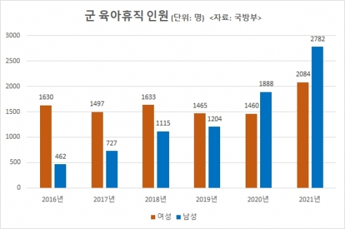 국방부 관계자는 “육아휴직 뿐 아니라 출퇴근시간 조정, 보육시설 확충, 가족수당 등 다양한 출산육아지원 제도를 실시하고 있다”면서 “지난해에 육아휴직 기간 중 진급한 간부가 347명이었다. 육아휴직이 승진에 걸림돌이 된다는 건 말 그대로 옛날 얘기일 뿐”이라고 설명했다.