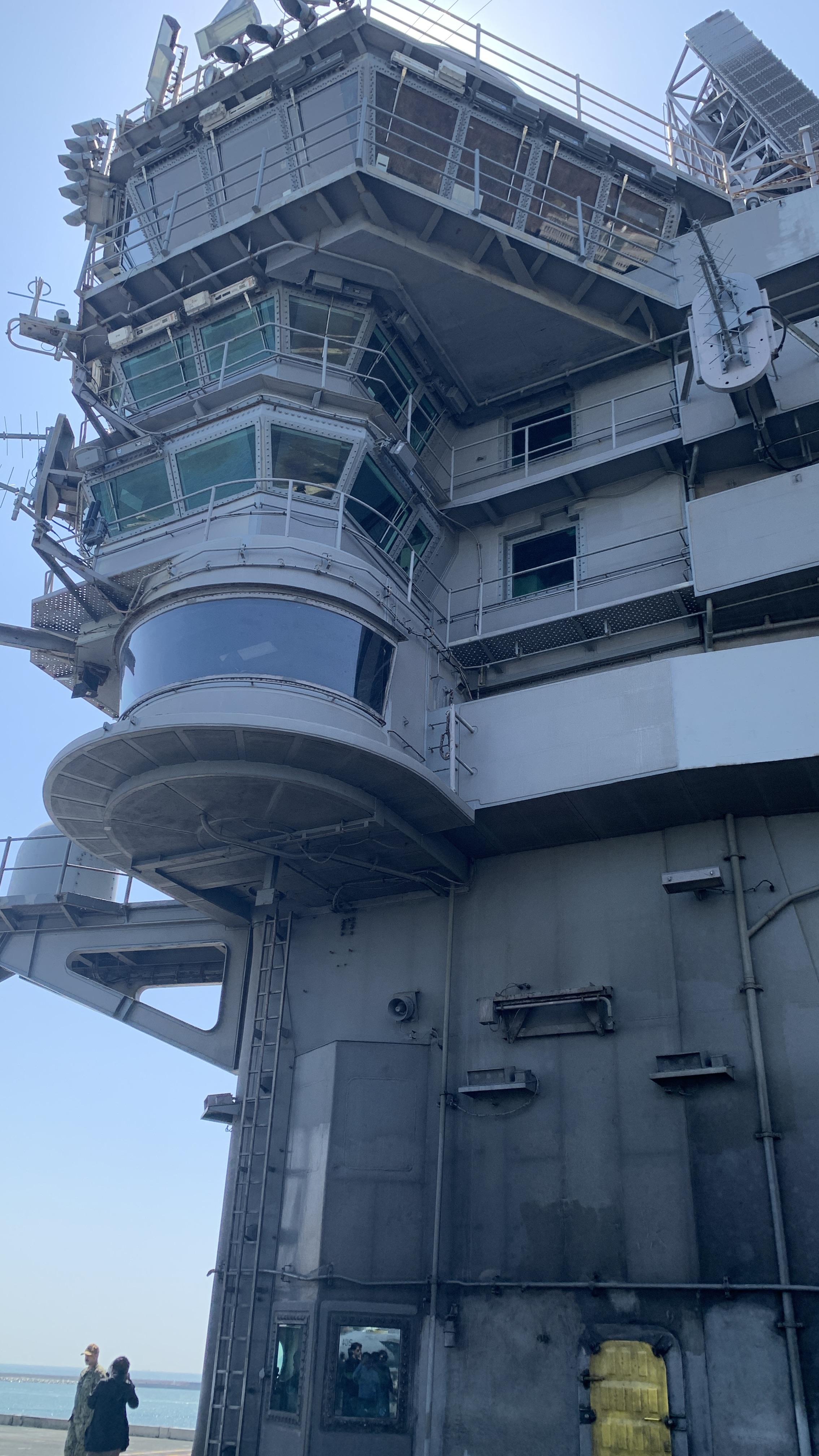 좁은 계단을 타고 4층 가량 올라가다보면 ‘거대하다’ 대신 ‘생각보다 낡았다’는 생각이 들게 된다. 영화나 뉴스화면으로 보던 반짝반짝 윤이 나는 이미지와는 사뭇 달랐다. 항공모함 옆면엔 녹슨 자국이 선명하게 보이고, 은박지매트로 함재기 조종석을 가려놓은 모습엔 영화 ‘탑건’으로 생겼던 환상이 깨질 수밖에 없다.