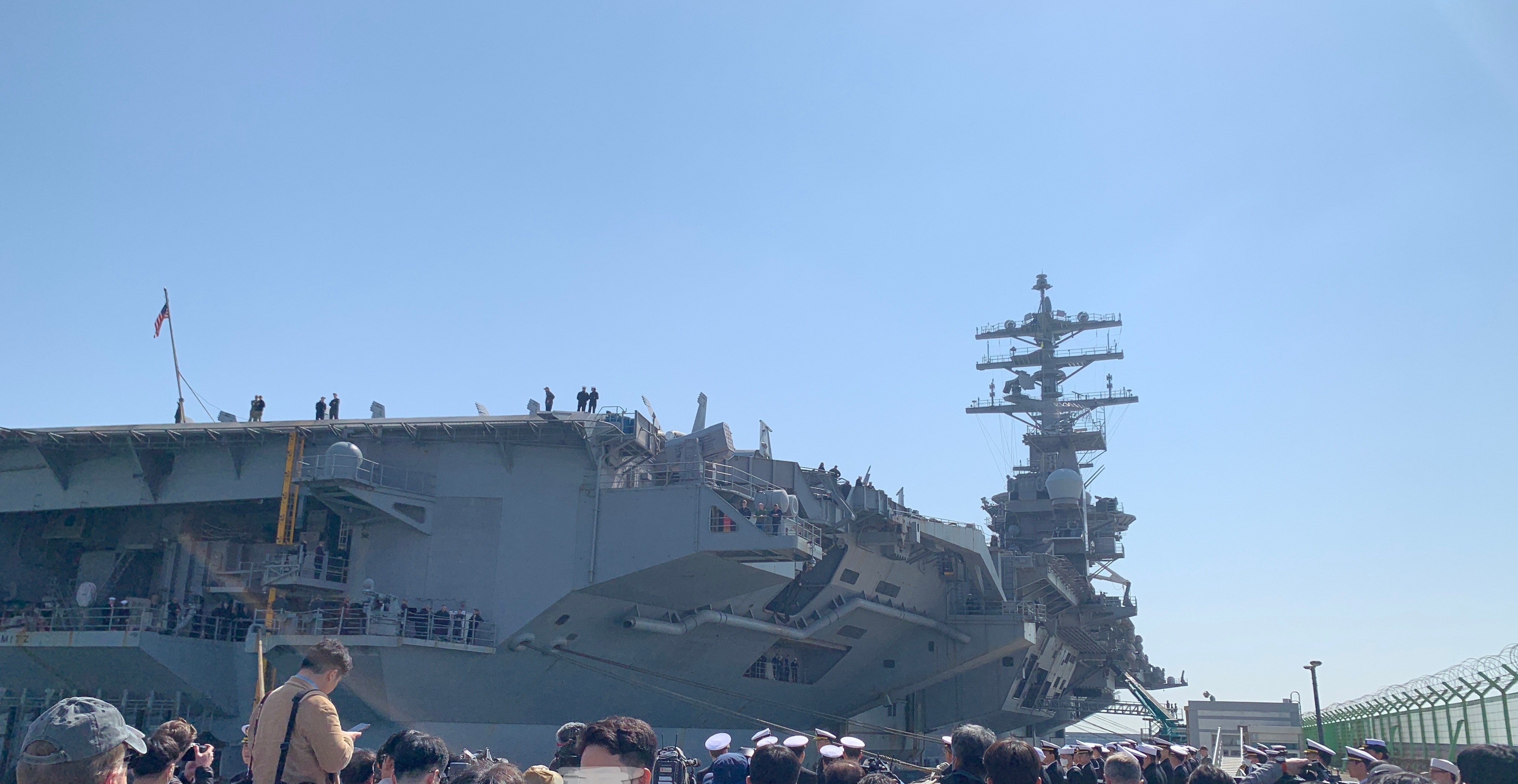 니미츠함을 포함한 11항모강습단은 전날 제주 남쪽 공해상에서 한미 연합해상훈련을 한 뒤 이날 오전 부산항에 입항했다. 니미츠함이 한국을 찾은 건 10년만이다. 핵추진 항공모함으로는 지난해 9월 로널드 레이건함 이후 6개월만이다. 항모강습단 장병들은 부산 유엔기념공원 참배, 판문점 공동경비구역 방문, 봉사활동 등에 참여할 예정이다. 4월 1일에는 시민 1200여명을 초청해 항모 내부를 공개하는 행사도 연다.