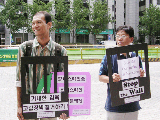 화요캠페인에 참여한 뚜라씨는 다른 참가자들과 함께 피켓을 들었다. 확성기를 들고 사람들에게 팔레스타인 문제에 관심을 가져달라고 호소했다. “팔레스타인 사람들은 지금도 이스라엘의 탱크와 총칼, 고립장벽 앞에 고통받고 있습니다. 버마 사람들은 오늘도 군부독재정권에 맞서 죽음을 각오하고 싸우고 있습니다. 이 모든 모습은 한국인들이 과거 식민지와 군사정권 아래서 겪었던 일들입니다. 다시는 버마정권이나 이스라엘정권 같은 이들이 무고한 생명을 없애는 일이 없어야 합니다.”