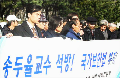 송 교수 대책위, 송 교수 석방 촉구 기자회견 열어