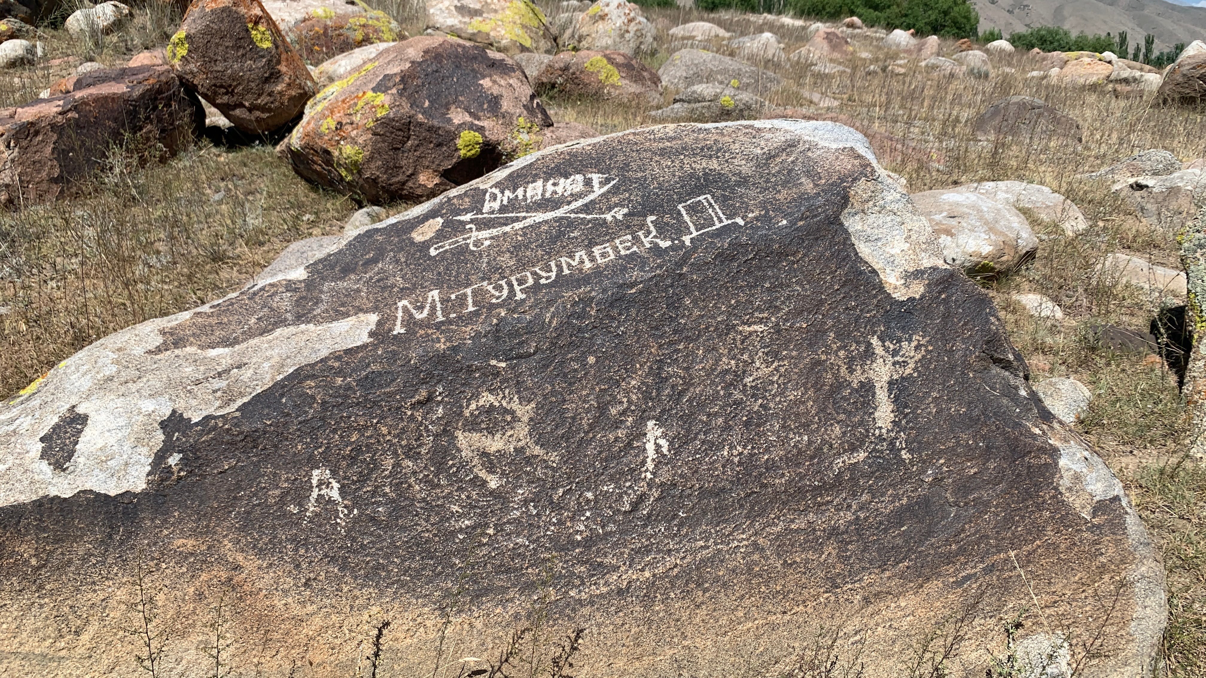 이식쿨 북쪽에 있는 촐폰아타(Чолпон-Ата)에는 거대한 암각화 공원이 있다. 공원 끝까지 갔다 오는데만 30분 이상이 걸릴 것 같은 넓은 공원에 고대인들이 남겨놓은 다양한 암각화가 지천이다. 아쉬운 건 공원 앞쪽에는 암각화마다 안내판이 있어서 암각화 모양을 표시도 해놓았는데 좀 더 위쪽으로 가면 돌무더기만 잔뜩 보일 뿐 어디에 암각화가 있는지 제대로 확인할 수가 없다. 그래도 그 또한 좋았다.