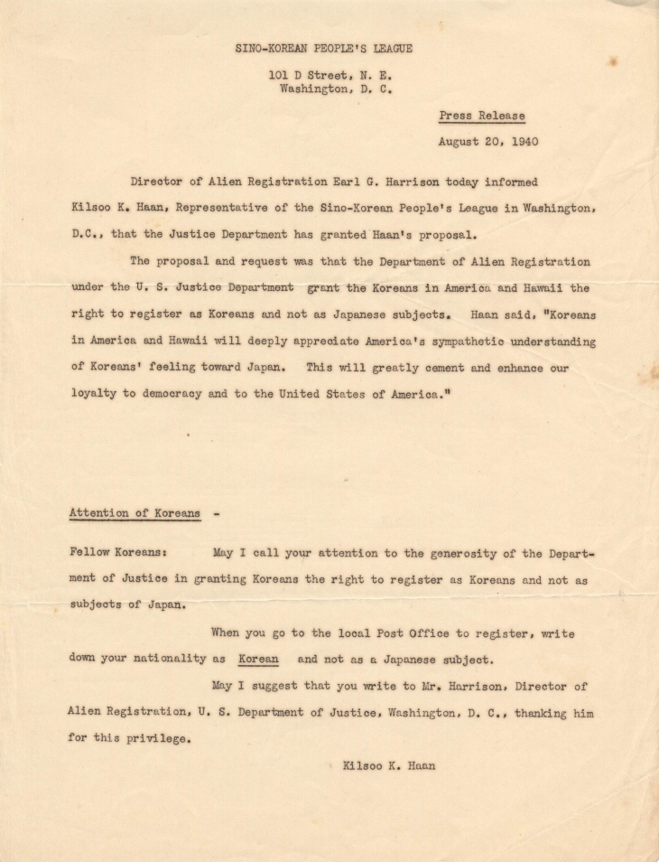 제2차 세계대전이 한창이던 1940년 8월 재미 한인 독립운동단체는 활동보고를 통해 한 미국인에게 감사 편지 보내기 캠페인을 전개했다. 해리슨 부장의 노력으로 규정이 바뀌면서 더이상 미국 내 외국인 등록 때 일본 국적을 쓸 필요가 없어졌기 때문이다. 이름조차 생소한 이 미국인의 존재가 16일 서울신문이 단독 입수한 한국독립운동사 발굴자료를 통해 최초로 드러났다.